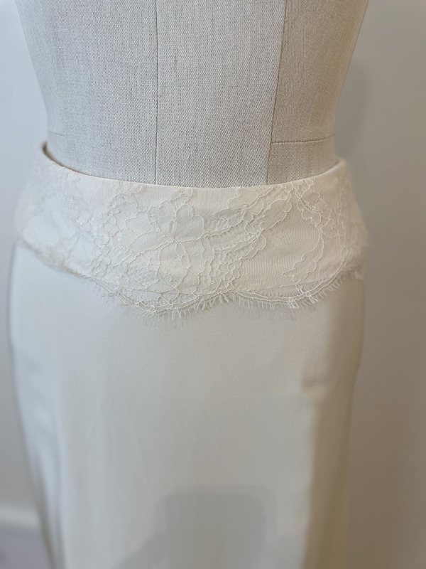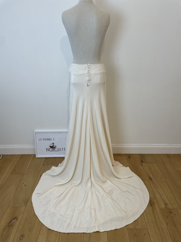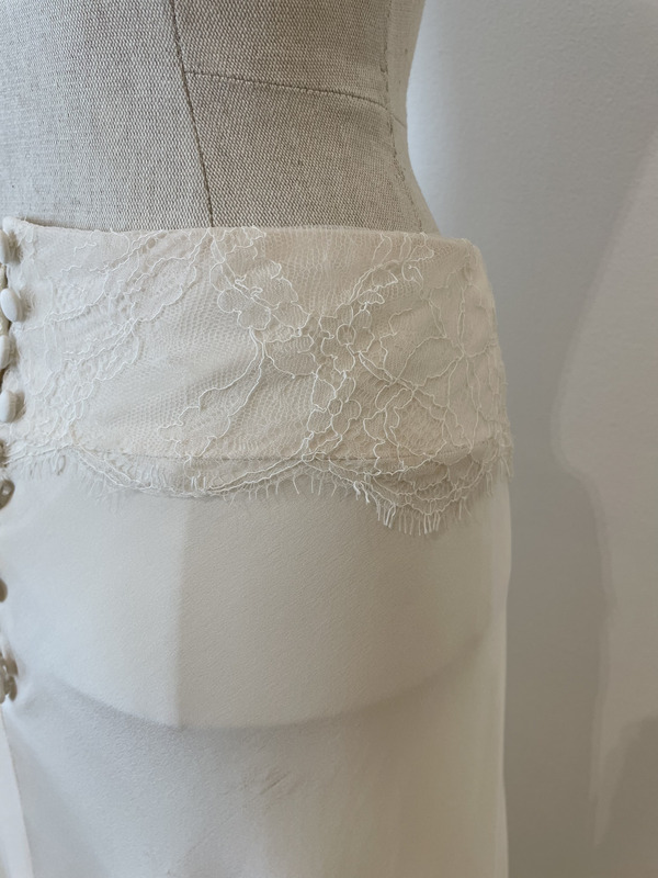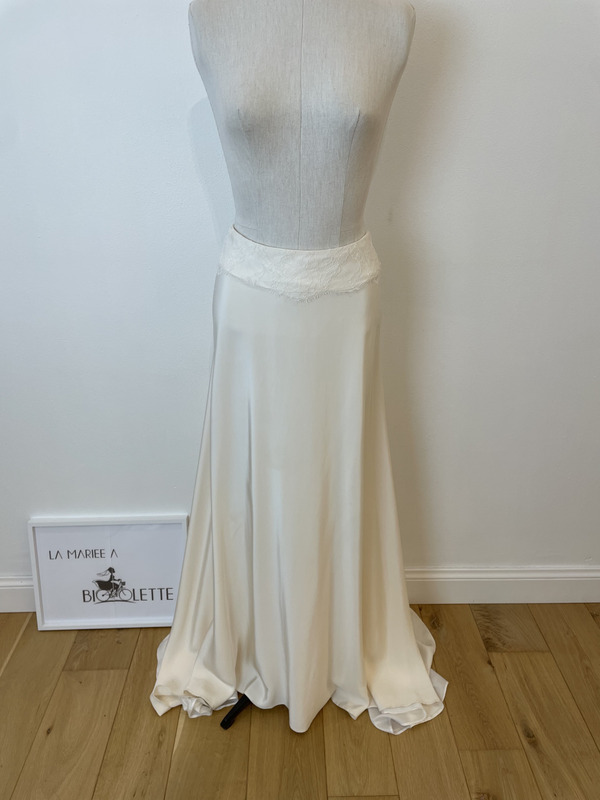 Jupe longue et fluide, avec ceinture en dentelle, de la créatrice Véronique Billiet.
